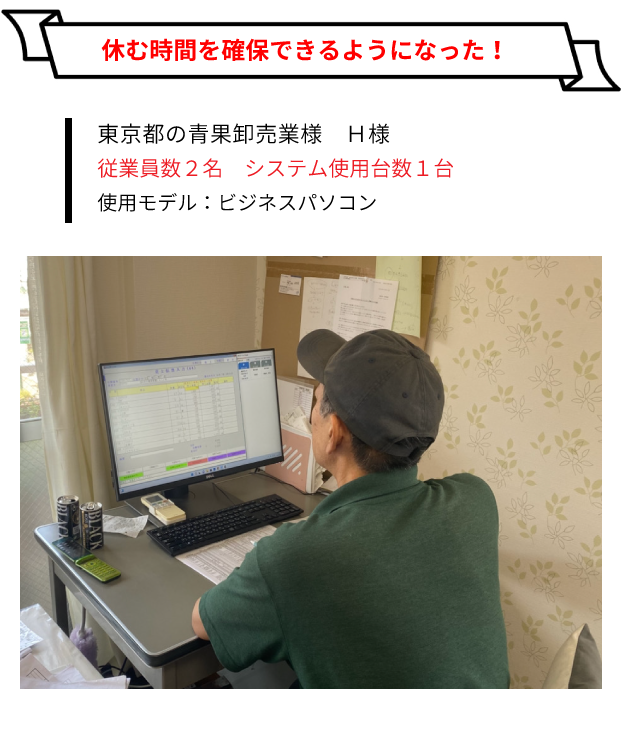 営業の方が定期的に訪問してくれるので、日常的にコミュニケーションが取れて安心です。他の青果業の事例も紹介してもらえるため、自分たちの業務改善にもつながっています。困った時には電話一本でリモート対応していただけますし、機器本体のサポートも任せられるので余計な心配をする必要がありません。