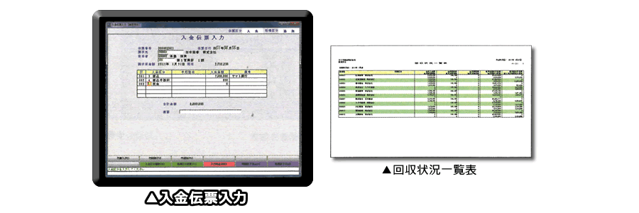 入力した入金データをもとに担当者別得意先ごとの回収状況を一覧表で確認することが可能。回収予定表では、請求金額に対する回収額や滞留残の把握ができます。また、回収状況一覧表では、月別の入金、回収、滞留、翌月以降の回収予定額が確認できます。