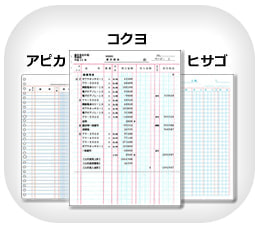 表裏のある市販の仕入帳にも印刷ができます。コクヨやヒサゴ、アピカなど市販の仕入帳はもちろん、オリジナルの仕入帳も全て印字OKです!