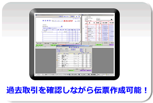 画面に異なる伝票を同時に起動することが可能。過去の取引を確認しながら、伝票作成することが出来ます。過去の取引を見ながら伝票が作成可能です。