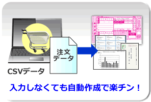 ネットショップでの売上データ、注文データを、CSV形式で保存できれば、カシオのシステムにインポートすることが出来ます。納品書や請求書、送り状など、伝票の入力がとても楽になります。