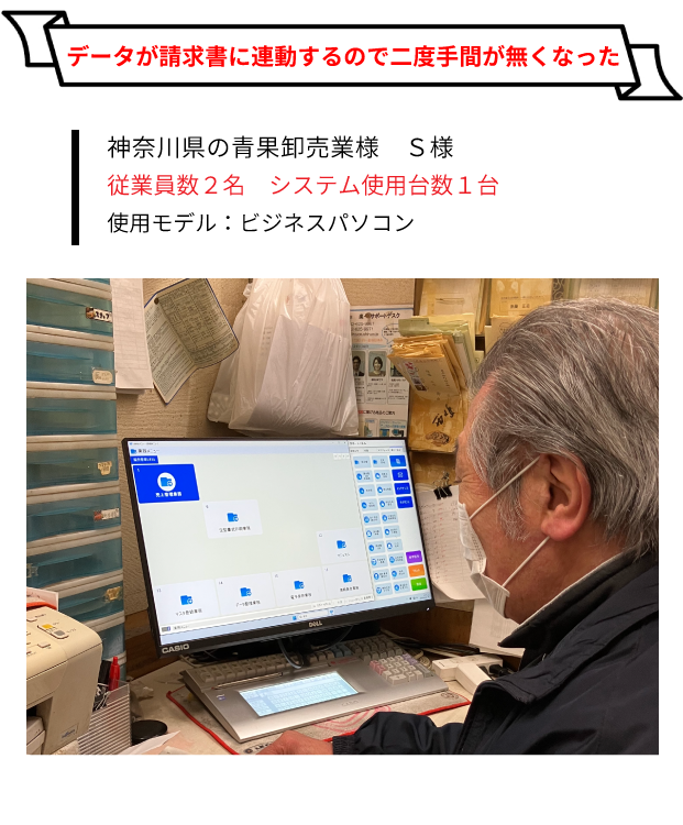 以前は、伝票は手書きが多く、コクヨの伝票を全て手書きで、市場で使う仕入書ももちろん手書きでした。野菜を育て、箱詰めなどの作業に追われる中での伝票作成には大変苦労していました。