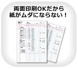 コクヨの売上帳などの表裏の両面印刷ができます。表と裏で別々で入力し直すことはなく、表の内容から続けて裏へ印刷ができます。紙のムダを無くし経費削減に繋がります。