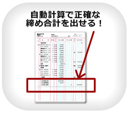 コクヨの売上帳を作成し締め合計を自動で計算してくれます。カシオの計算機能で正確な合計を出せるので、計算ミスを防げます。